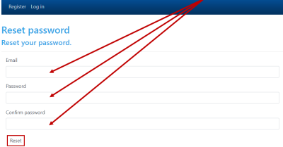 • Enter your Email address, new PasswordConfirm password, and click Reset.