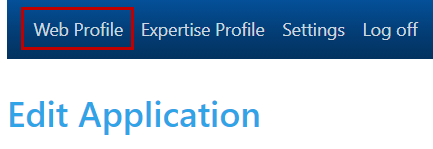 • Upon login you will view the Web Profile / Edit Application screen.